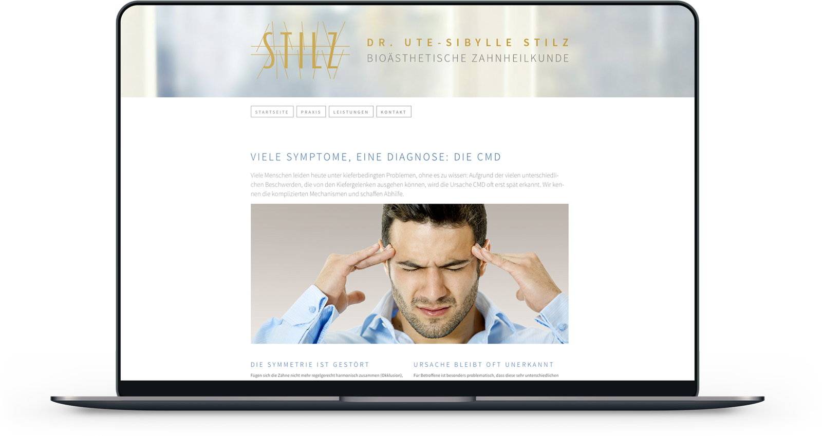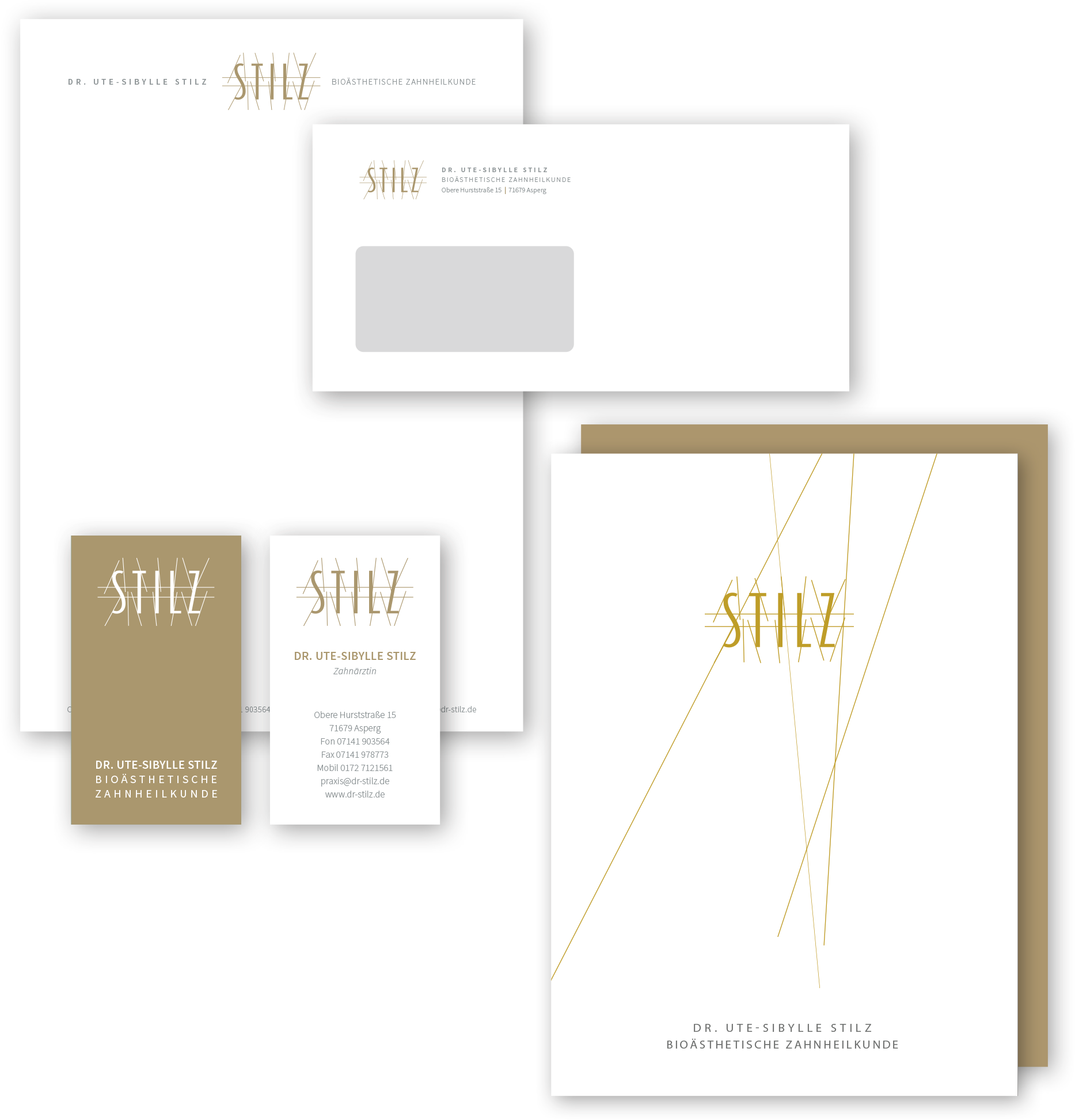 Sie wollte es noch einmal wissen: Im fortgeschrittenen Alter gründete Dr. Stilz eine Privatpraxis mit dem Therapieschwerpunkt: Bioästhetische Zahnmedizin. Unser Logo-Entwurf spiegelt diese Besonderheit wider.