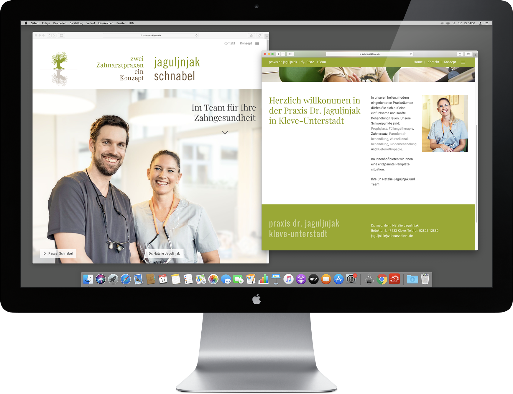Zwei Praxen – ein gemeinsamer Auftritt. Prävention als Basisphilsophie, jedoch mit unterschiedlichen Therapieschwerpunkten: So kooperiert das Ehepaar Dr. Natalie Jaguljnjak und Dr. Pascal Schnabel, um ihre Patienten wechselseitig optimal zu behandeln. Konzeptionell und in der webtechnischen Umsetzung waren wir besonders gefordert.