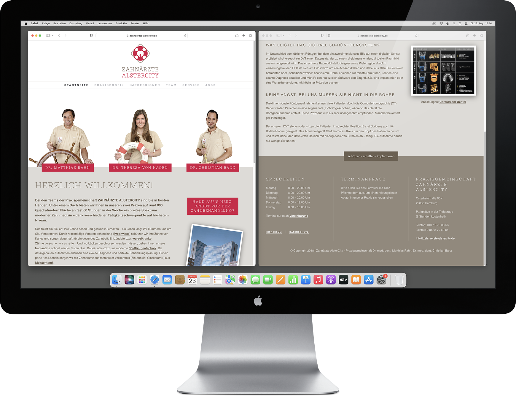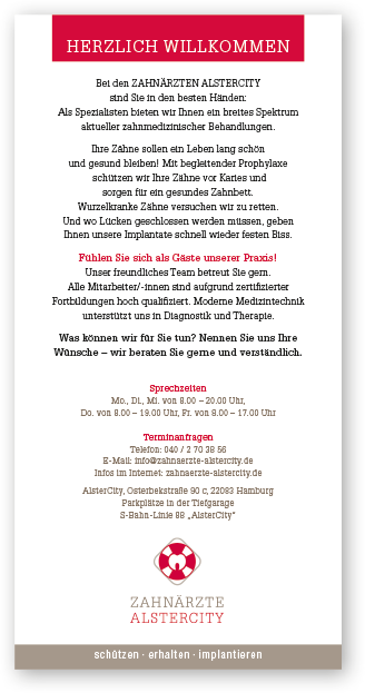 Hanseaten gelten gemeinhin als eher zurückhaltend. Aber die Praxisgemeinschaft Zahnärzte Alstercity in Hamburg wünschte sich einen eindeutig maritimen Auftritt. Den Wunsch haben wir gerne erfüllt.