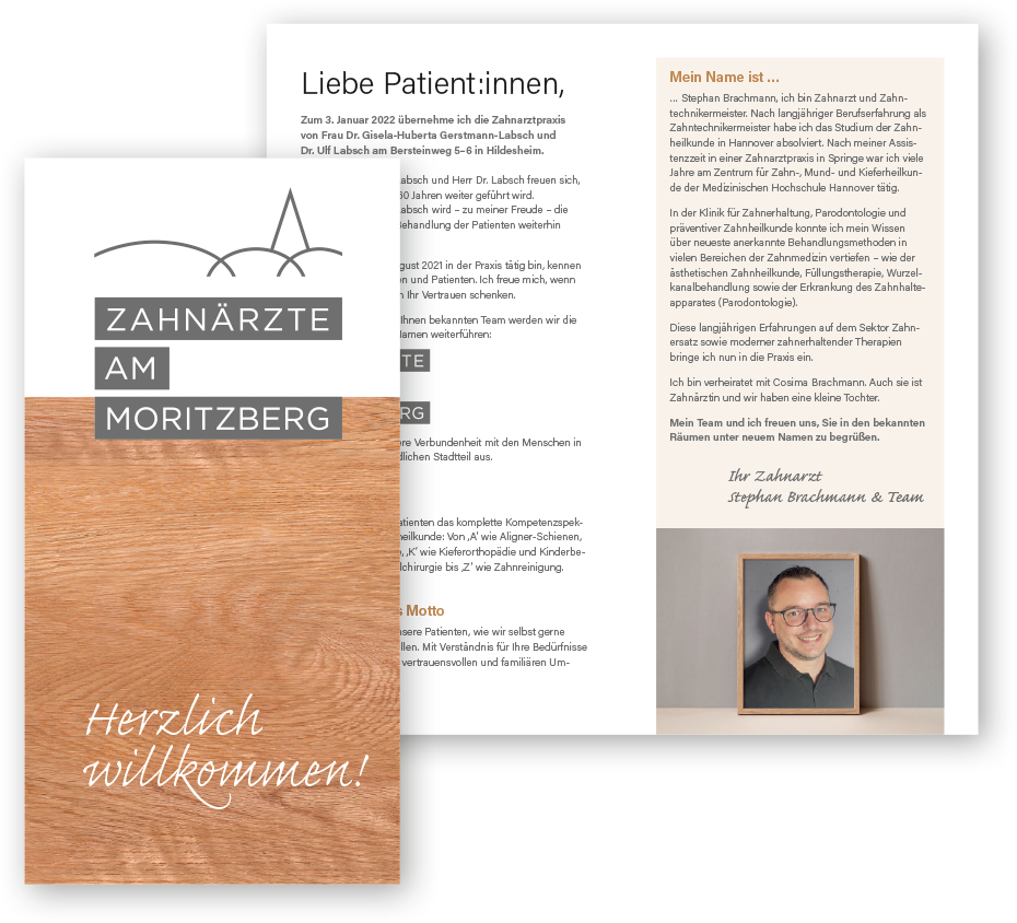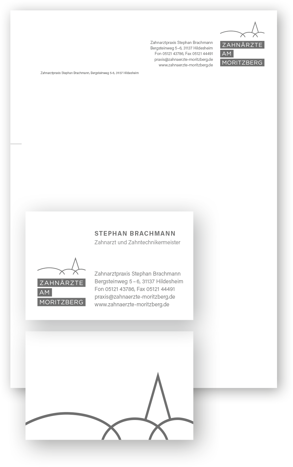 Noch in der Coronazeit übernahm Zahnarzt und Zahntechniker Stephan Brachmann die Praxis im grünen Stadtrandviertel von Hildesheim. Wir entwickelten den Praxisnamen mit Ortsbezug und ein Logo, das die typische Silhouette des Ortsteils wiedergibt – sehr reduziert und mit klarer Linienführung.
