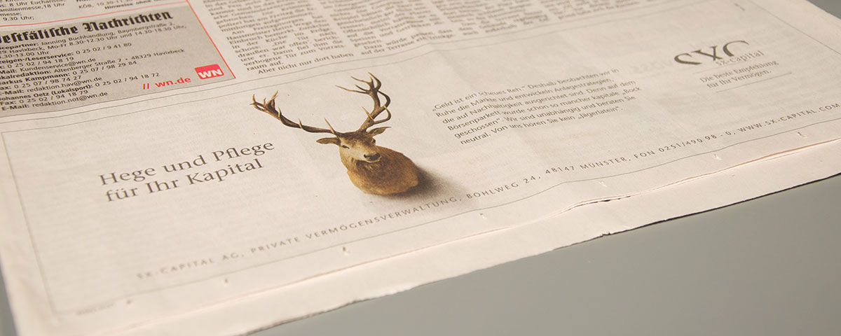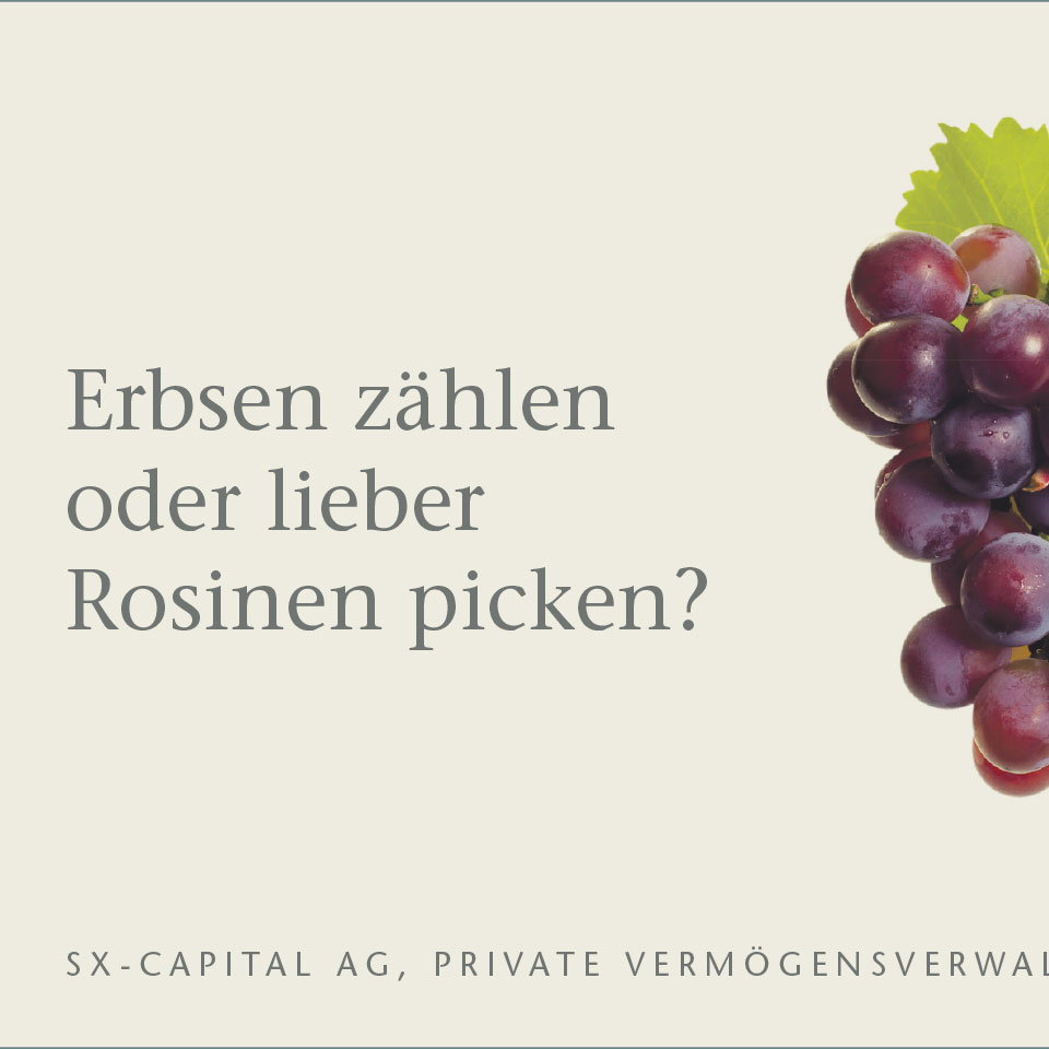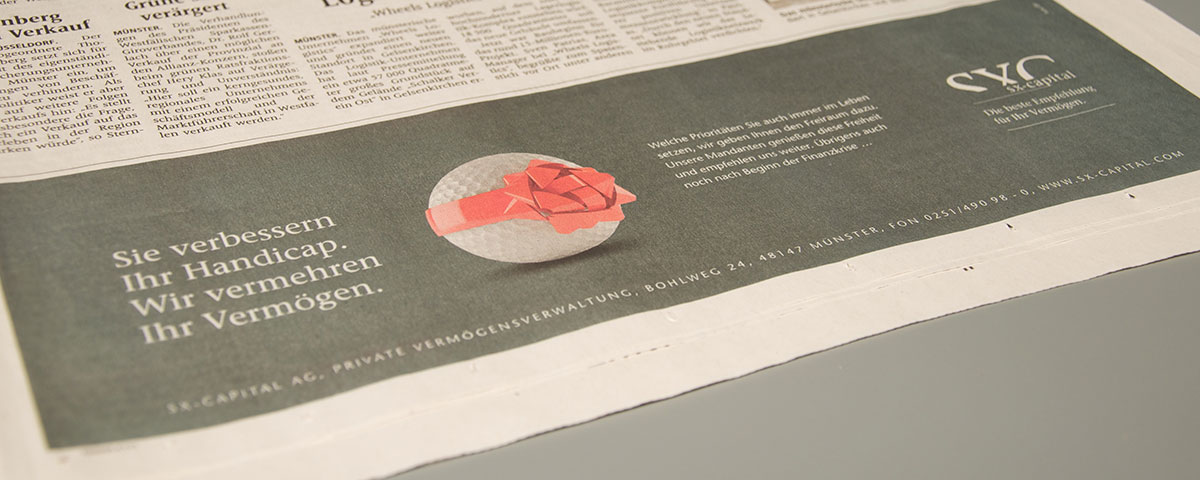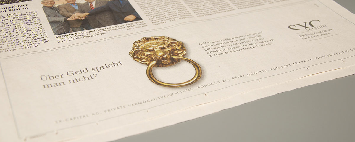 „Wenn’s um Geld geht …“, nein! nicht Sparkasse, sondern die Vermögensberater von SX-CAPITAL. Mit einer Anzeigenserie als Imagekampagne kommunizierten wir die Vorzüge einer individuellen Vermögensberatung durch Experten.